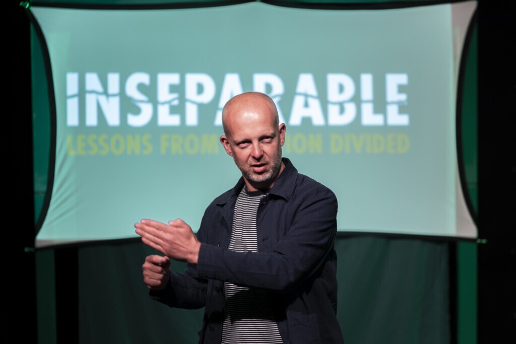 Theatre and the Arts are incredibly visceral learning tools that can move and empower us. I saw this myself in Bosnia visiting exhibitions that highlighted the conflict through photography and the curation of childhood objects that told a story. With Inseparable, we use Theatre as a powerful engagement mechanism that aims to connect with the audience on an emotional level, raises questions and challenges young people to think more deeply about the themes of the play. In the workshop which follows the show we explore in more depth the themes of Inseparable, empowering young people to take meaningful action in relation to hate speech and divisive language in their own lives.